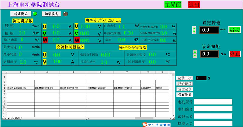 1 本軟件運(yùn)行于WINDOWS XP平臺,適用于電動汽車用電機(jī)及控制器臺架性能試驗(yàn)和耐久性試驗(yàn)。可由操作人員設(shè)置測量參數(shù)的名稱、單位、量程、報(bào)警值等內(nèi)容。實(shí)時顯示各項(xiàng)測量參數(shù)值,打印各種曲線報(bào)表。